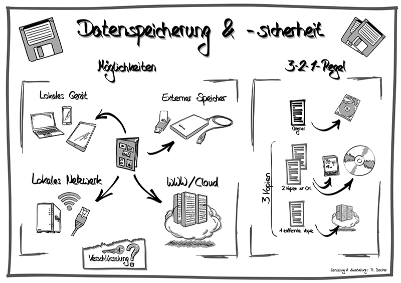 „Suchen, Verarbeiten und Aufbewahren: Wo sind eigentlich meine Dateien?“Wir alle arbeiten alltäglich mit privaten Dateien, die uns wichtig sind. Fotos, Dokumente – all das soll nicht plötzlich verschwinden. Dieses Angebot befasst sich mit der Frage, wo eigentlich die alltäglichen digitalen Daten (Fotos, Dokumente, Mails, …) landen und wie man diese sicher aufbewahren kann. Konkret geht es um Asekte wie: verschiedene Datenträger, Cloud-Speicher, Backup-Strategien (…)
